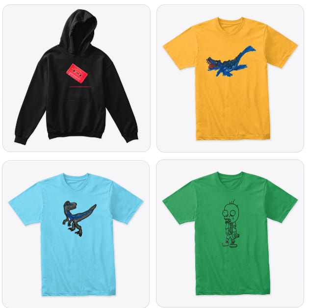 We all love to draw and create artwork, so we've created an online store to sell our artwork on various T-shirts, hoodies, and other gift items.