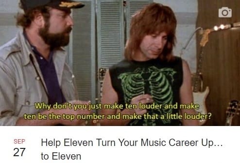 Upcoming event: Finally, the Eleven team and I are putting on an event at the Robinia Courtyard in Madison, WI on Thurs. Sept. 27, 2018 to introduce the Eleven music career center concept, get feedback from our Madison music community on how to best serve it and build new relationships while strengthening existing ones.